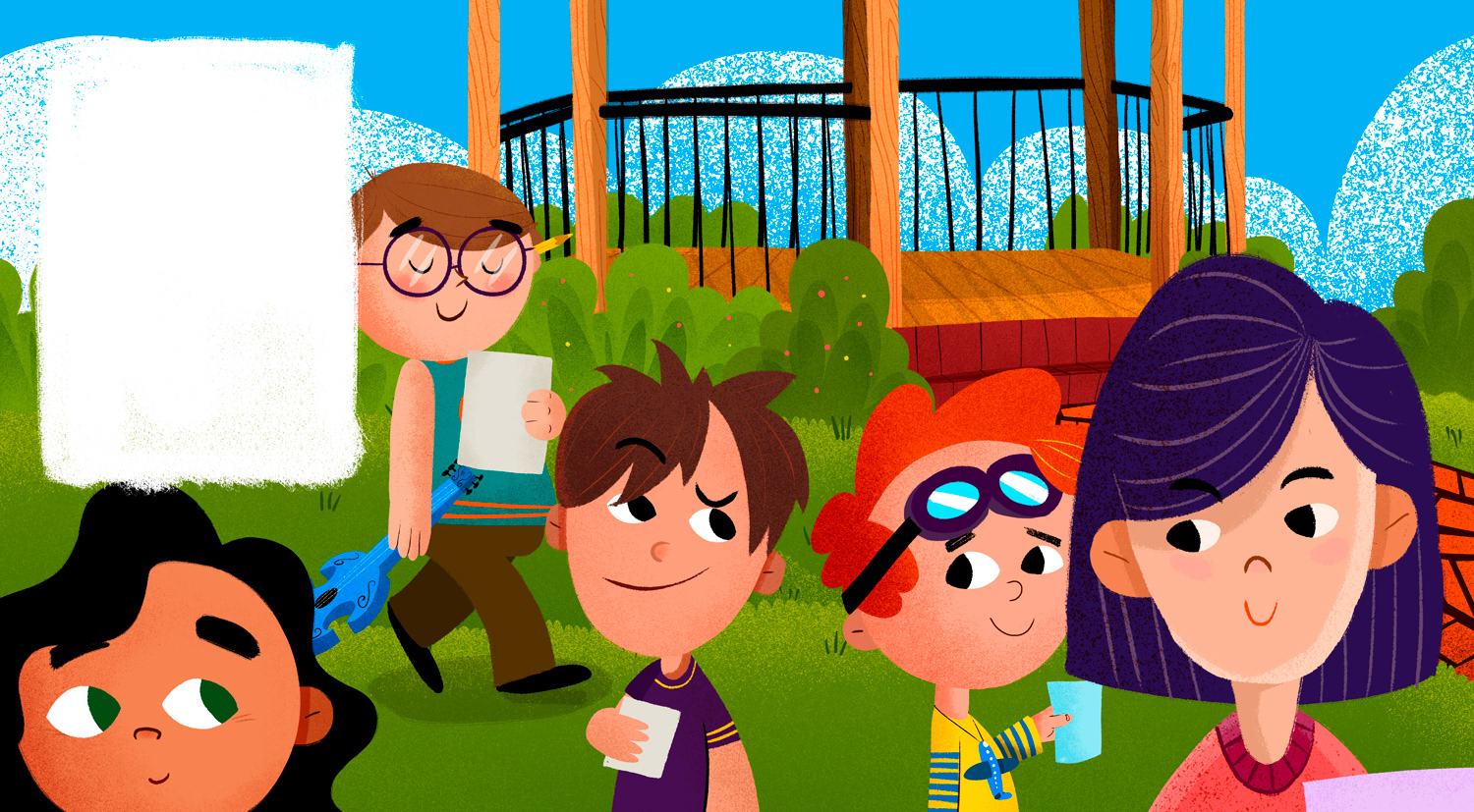 Ilustrações e projeto gráfico para o livro "O Coreto de canto encantado", escrito por Eraldo Miranda. Publicado pela Editora Krauss.