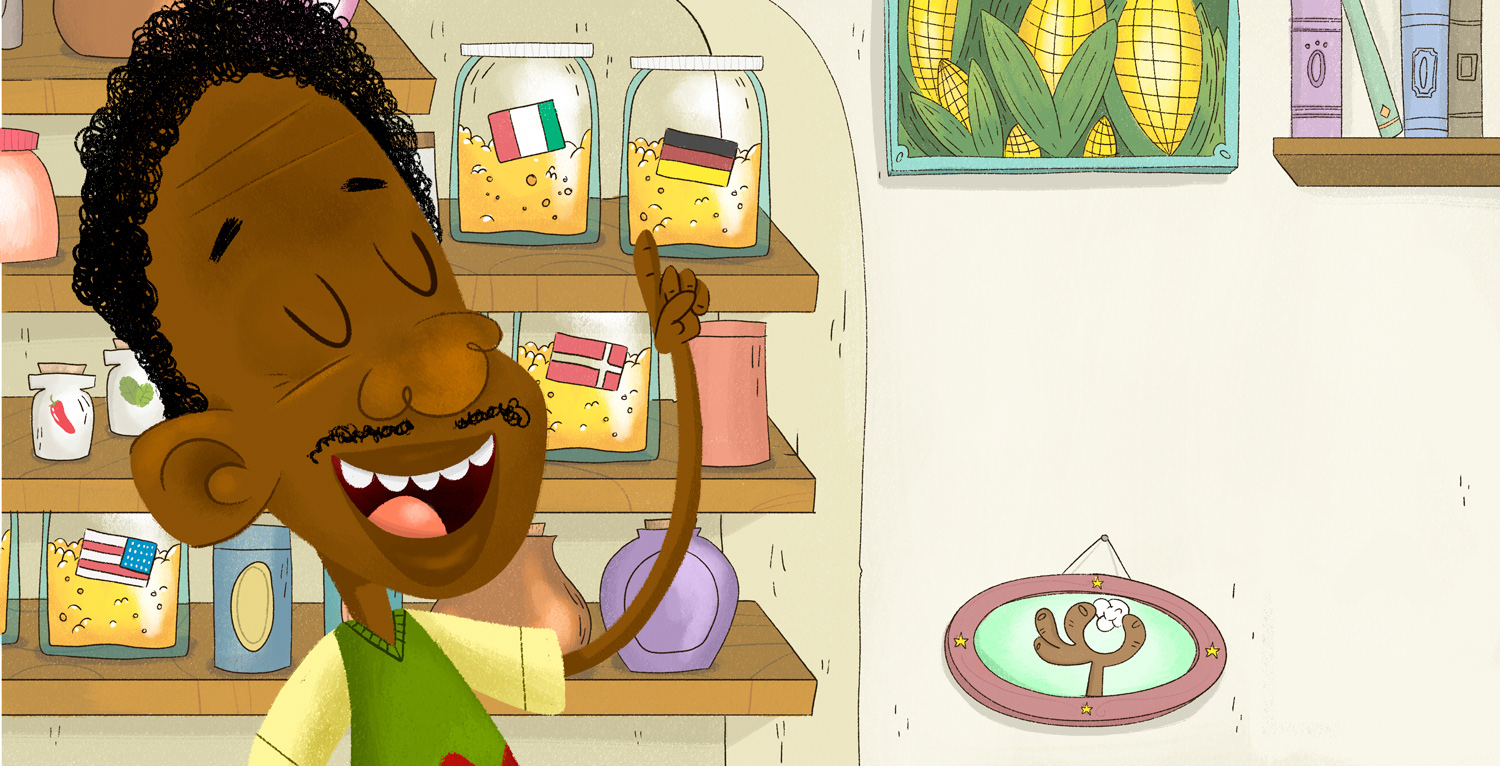Ilustrações e projeto gráfico para o livro "Pedroca, o Professor Pipoca", escrito por Alexandre Parente. Publicado pela Editora Ciranda Cultural. Este título também foi publicado na língua Inglesa.
